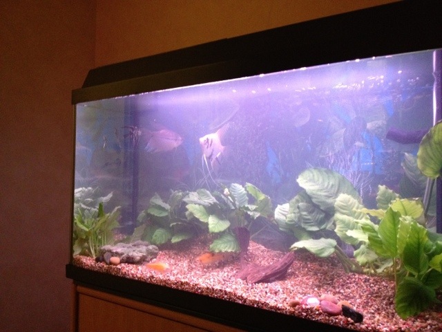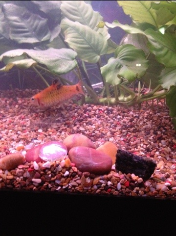 Idag kom fiskburen. Äntligen! 🙂 Vilken tur att fiskarna inte hann få yngel innan buren kom. 🙂 Ikväll lade vi fiskhonorna dit. 🙂 Till vänster har jag en väntande Platy och till höger en Miljonfisk. .